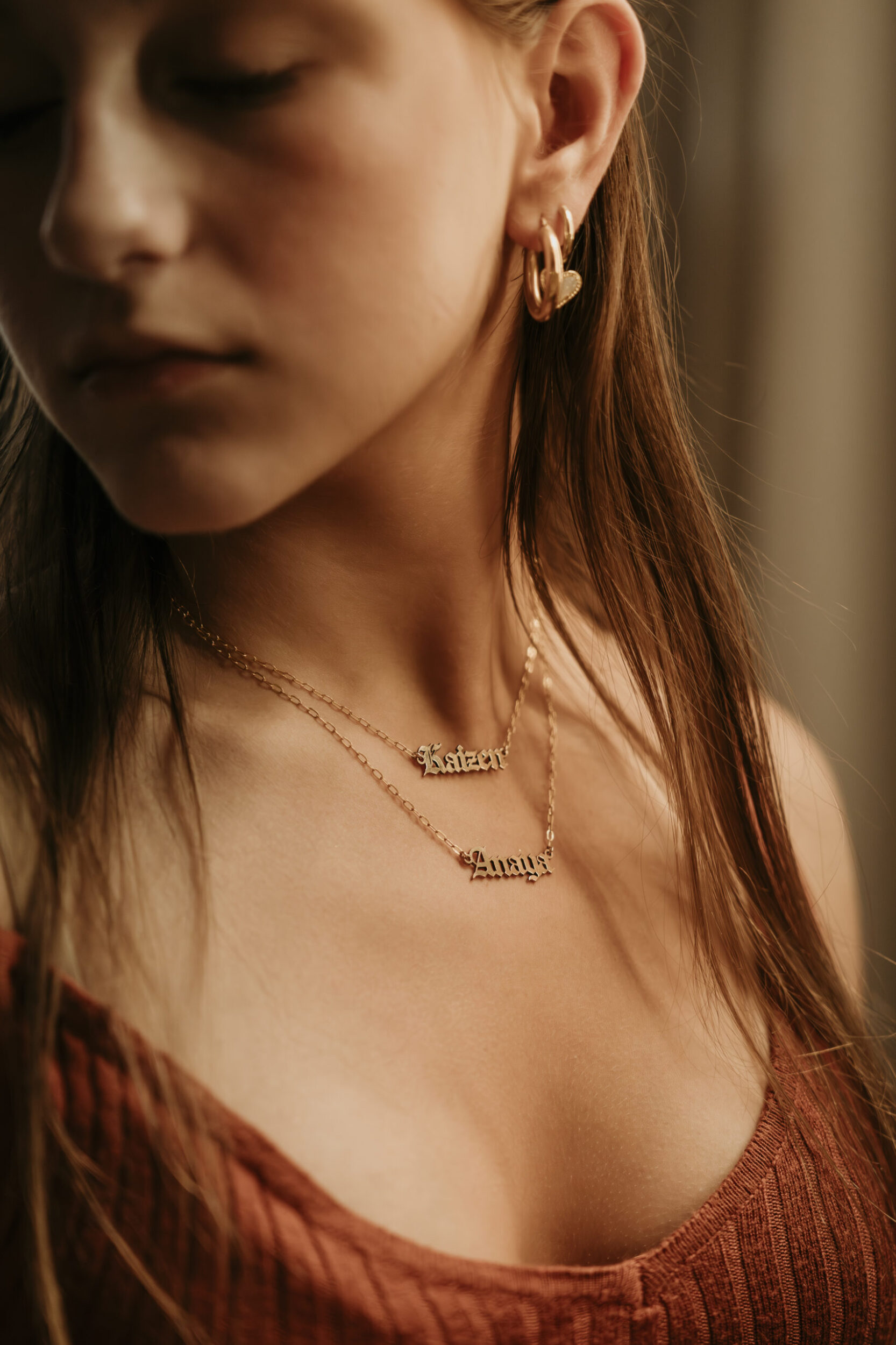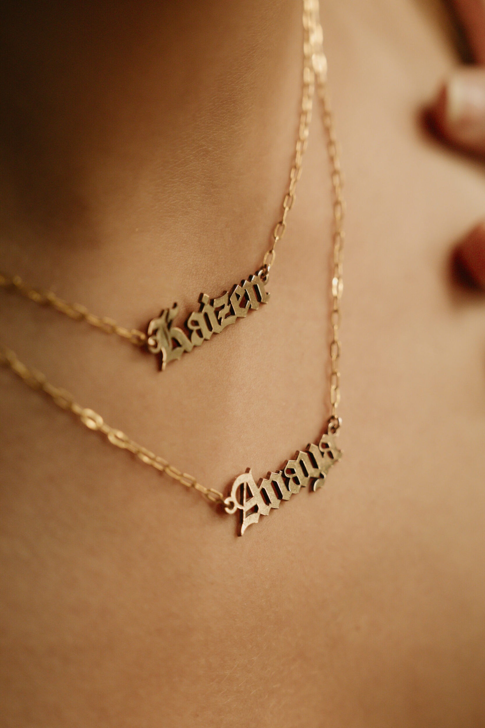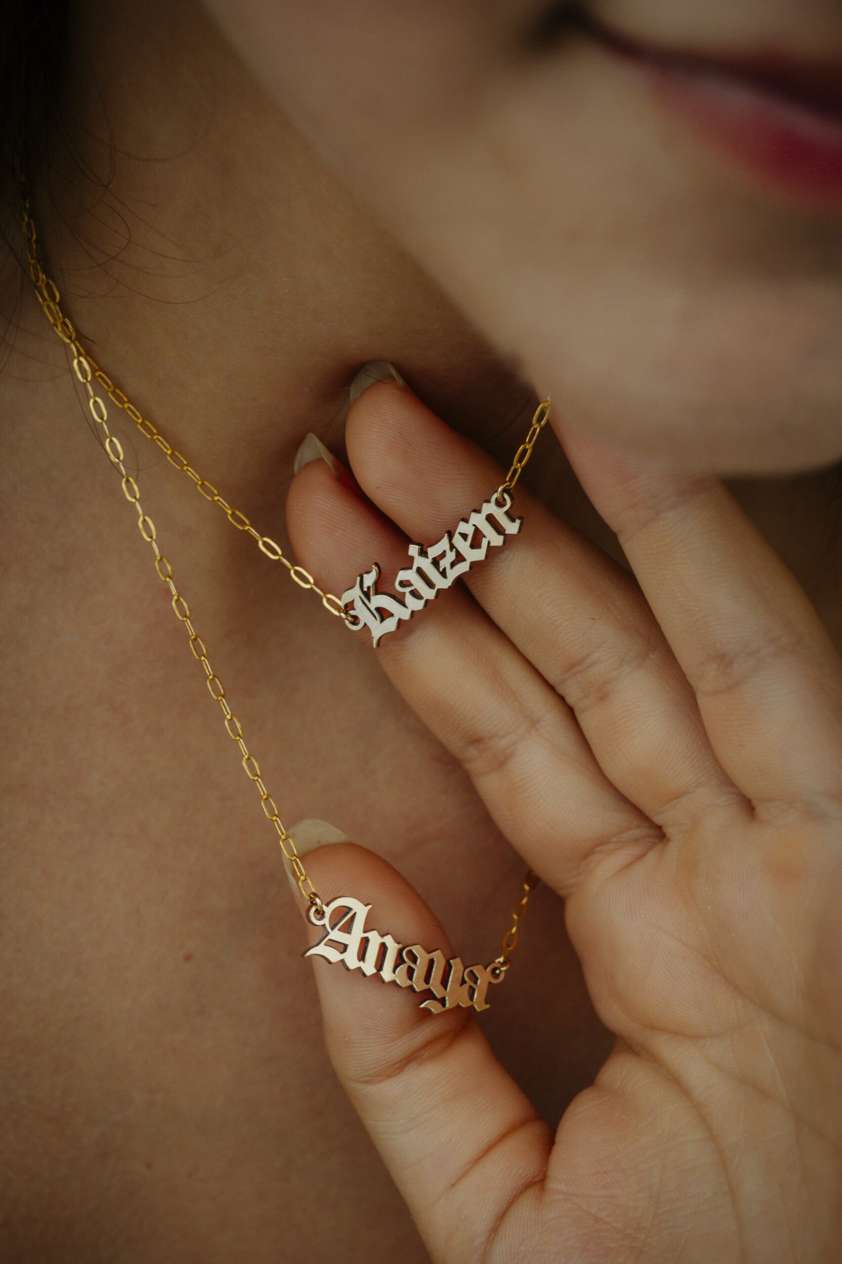 Looking for a meaningful, minimalist necklace that features two names on one clasp? Our double name necklace is the perfect personalized gift. This bestselling piece is handcrafted from high-quality 14k gold filled (100x thicker than gold plated) and designed to carry two custom nameplates—each on its own delicate chain, joined by one clasp for a sleek, layered look.
