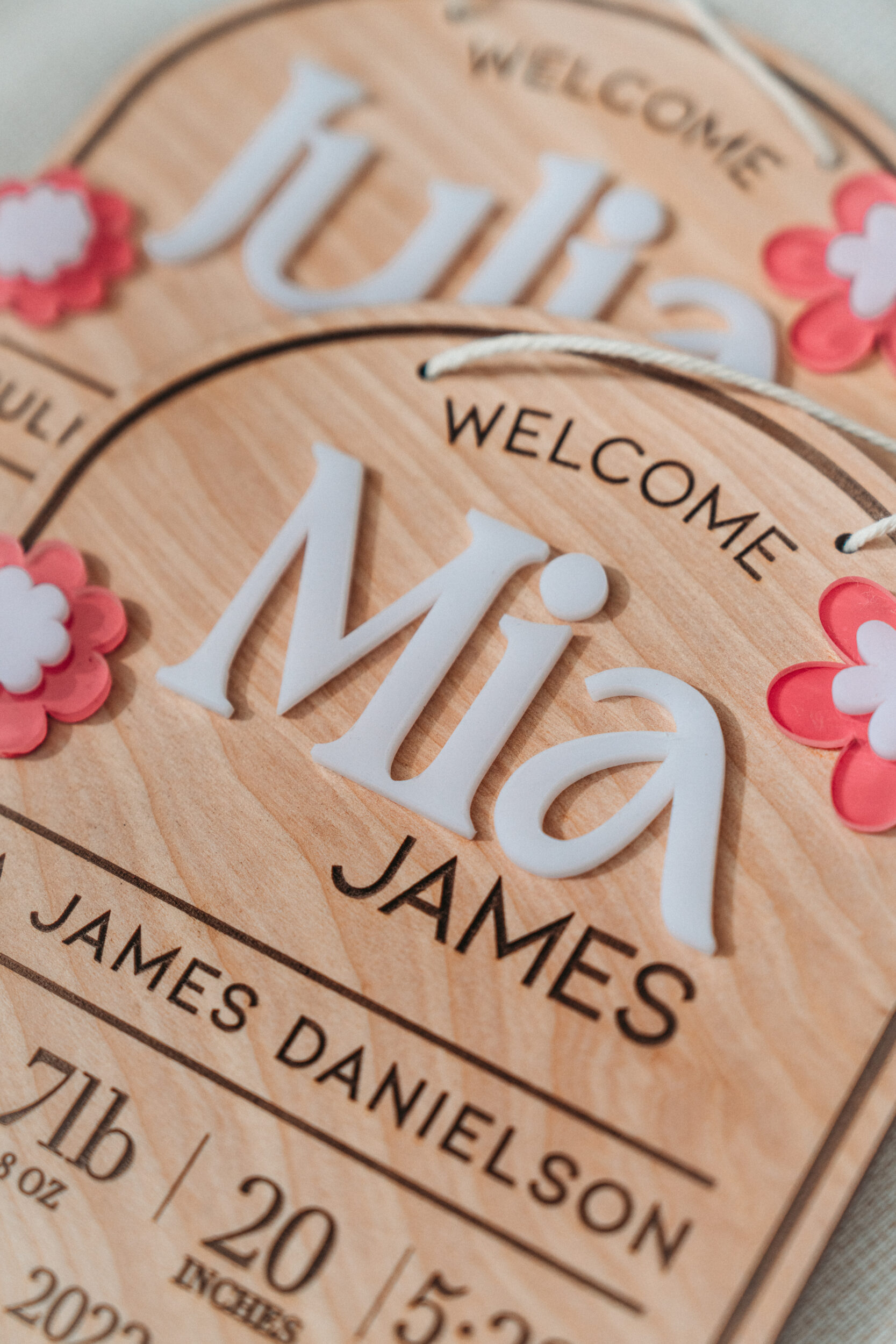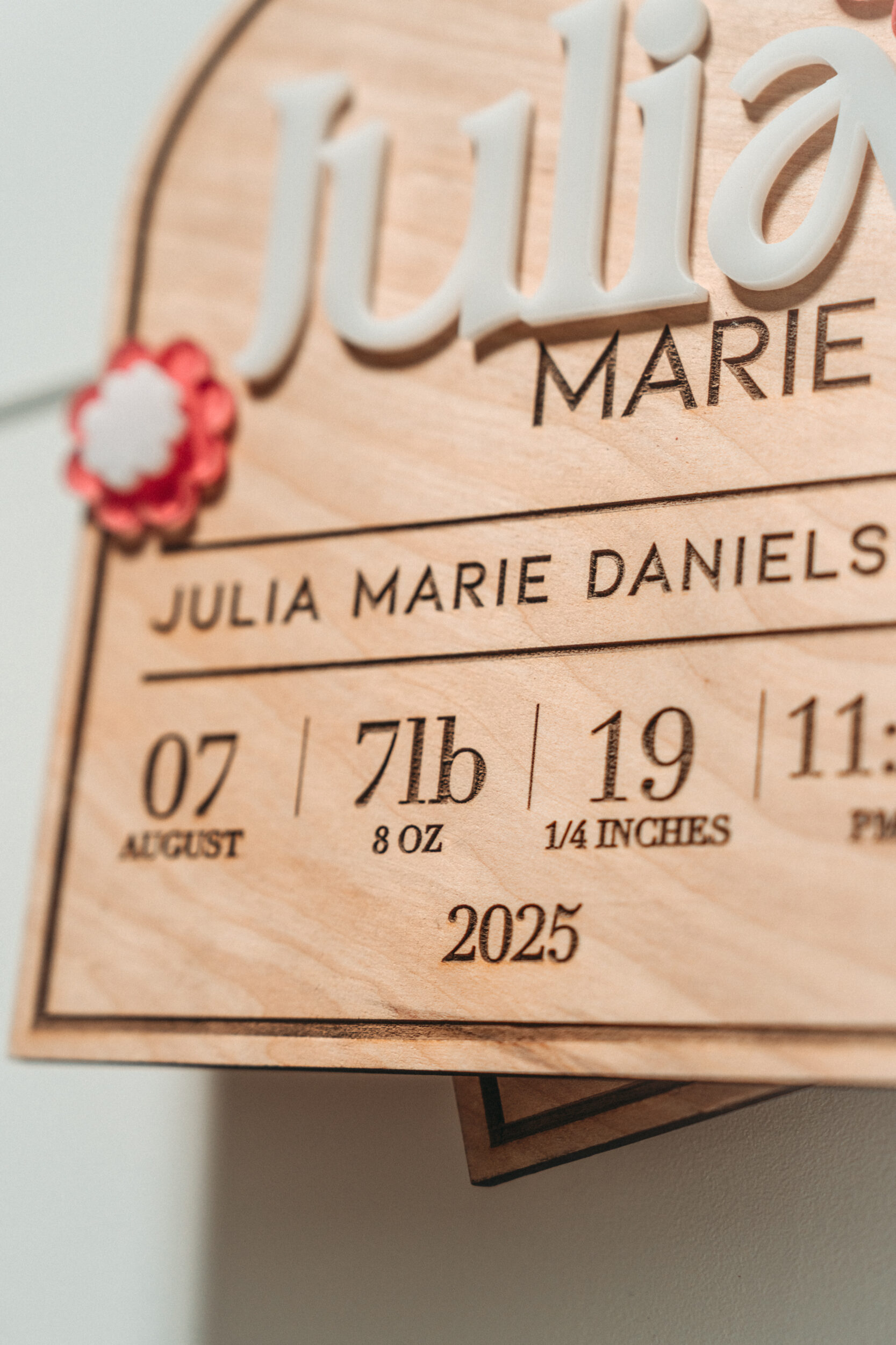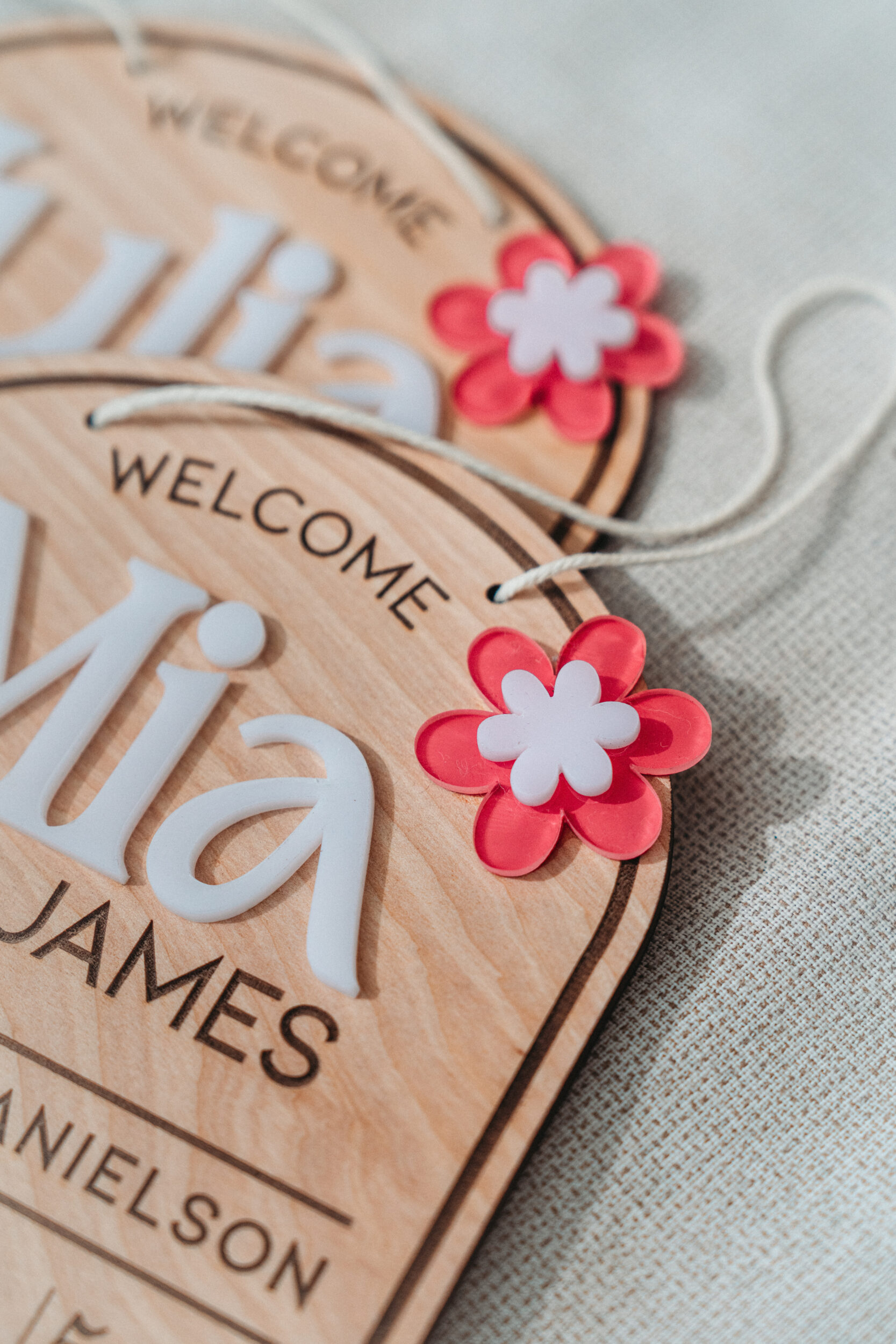 Each sign is crafted from 1/4” natural birch wood and laser-engraved for crisp, lasting detail. The 3D acrylic adds dimension and makes the name stand out beautifully.