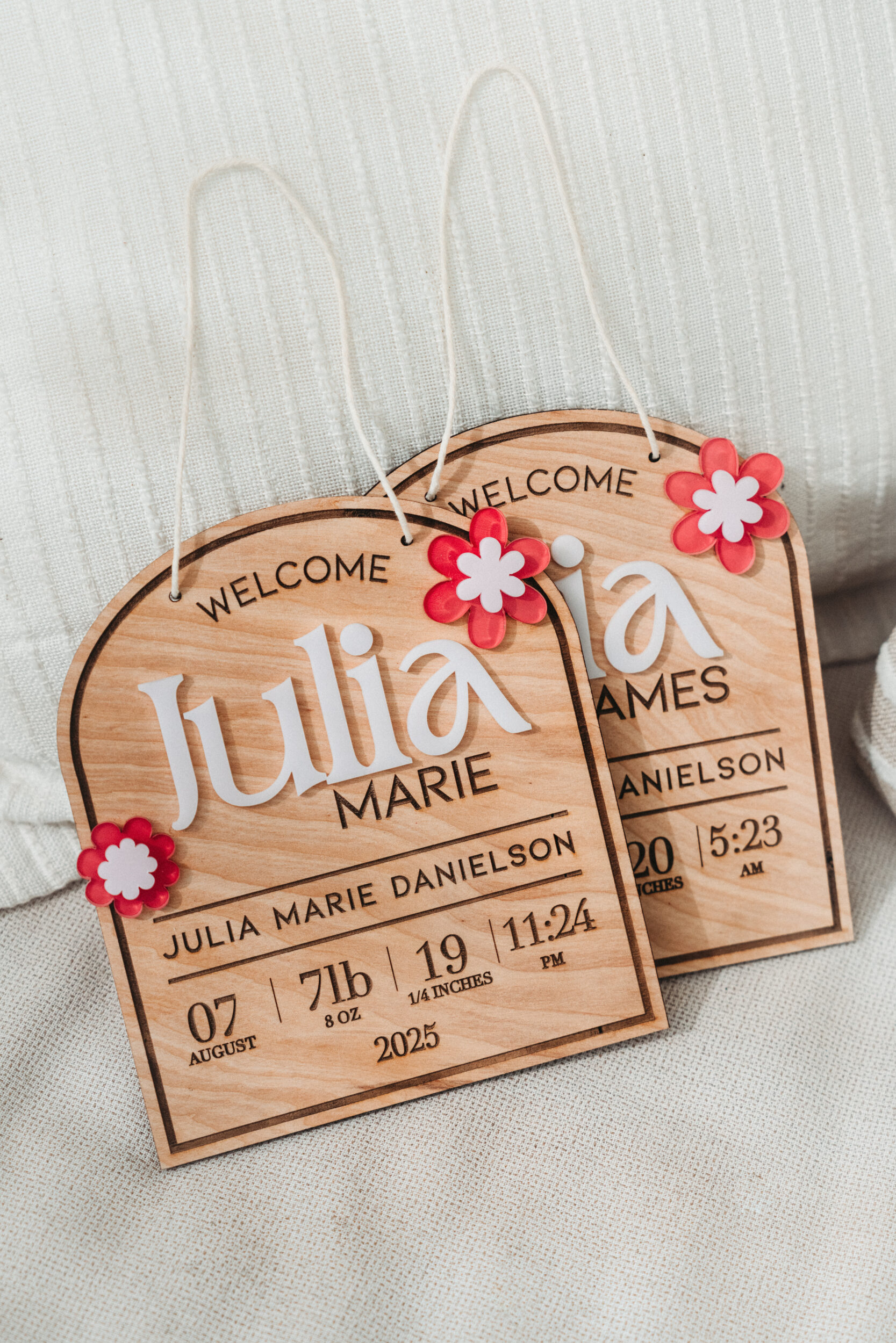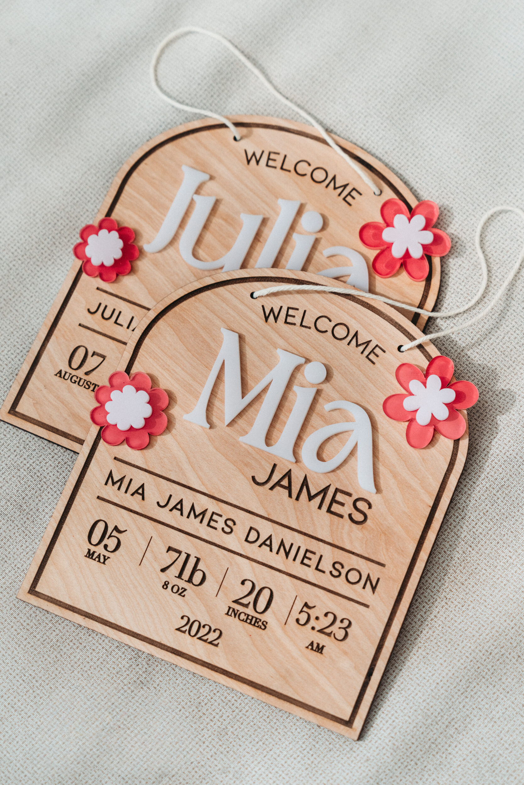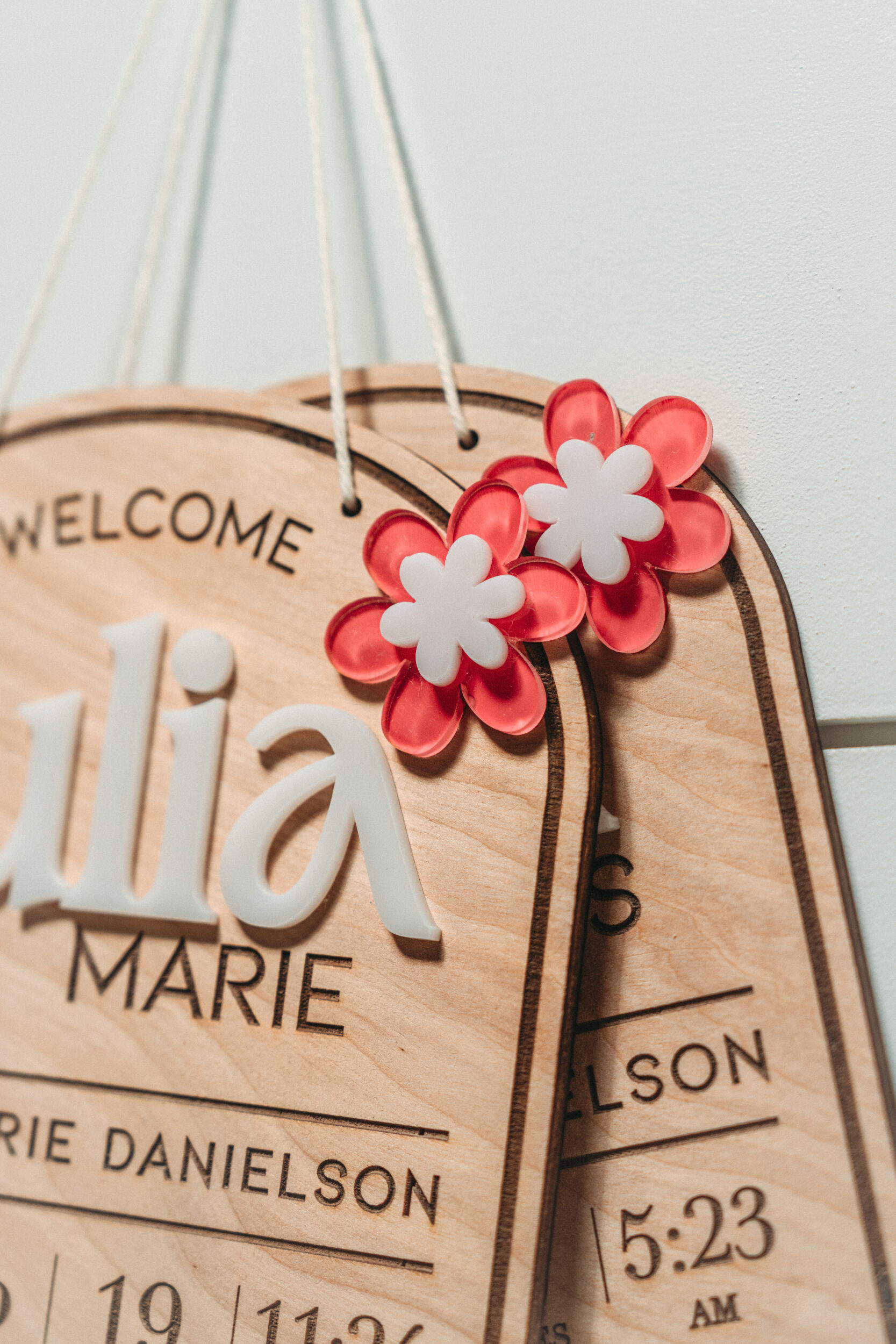 Each sign is crafted from 1/4” natural birch wood and laser-engraved for crisp, lasting detail. The 3D acrylic adds dimension and makes the name stand out beautifully.