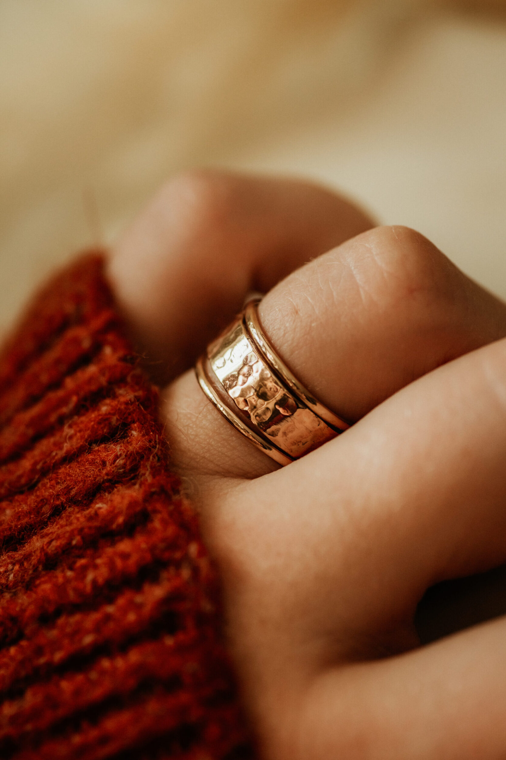 Band Width: Main Band is approx. 5.5mm (varies slightly due to hand-formed nature). Stacking Rings are 1mm thick each.